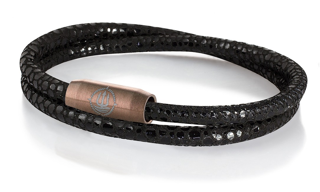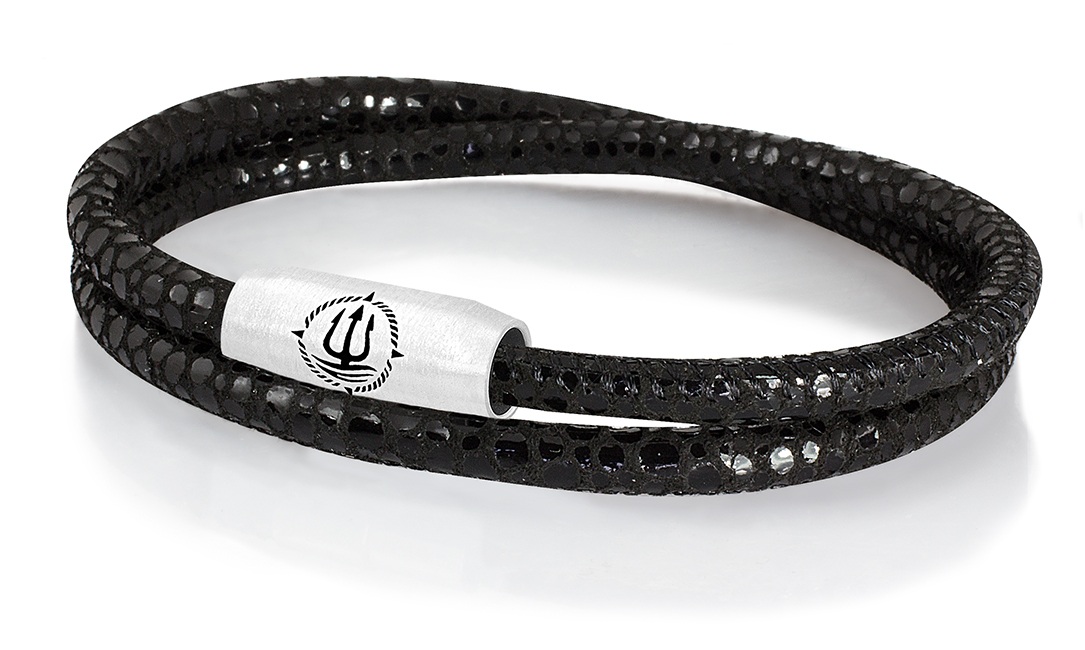 Leder mit Rochen-Optik, geprägt, Verschlüsse aus Edelstahl teilw. PVD-beschichtet, "Bootsmann" aus echtem Sterlingsilber