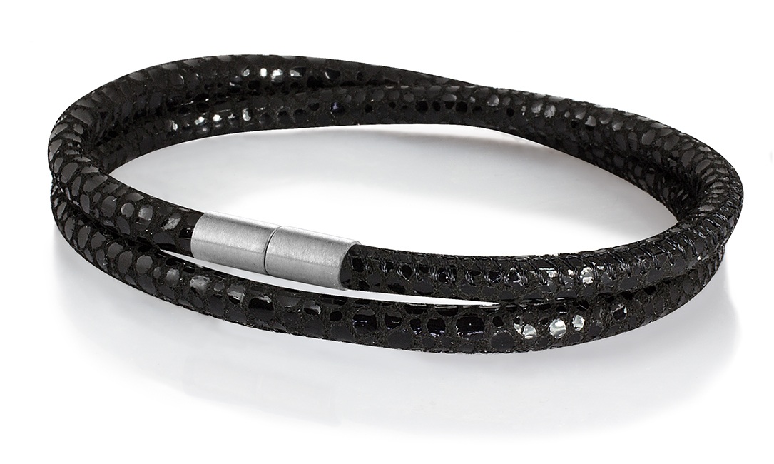 Armband aus Leder mit Rochen-Optik _ Modell “Sylt” schwarz, geprägt, 4mm _ doppelt