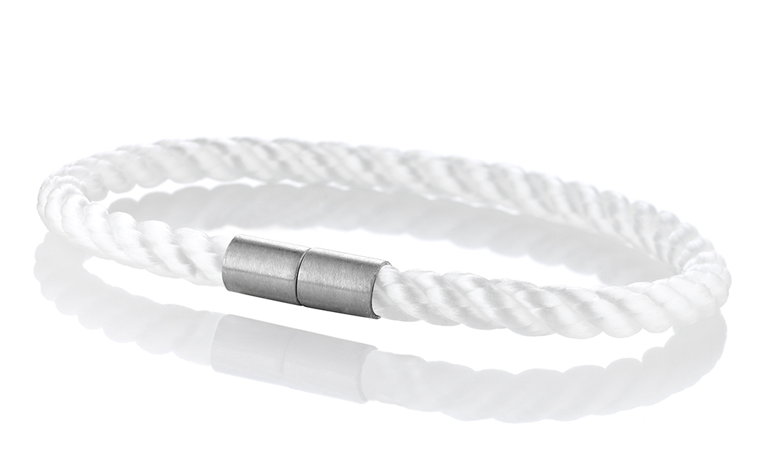 Ein Magnetverschluss aus hochwertigem Edelstahl dient als perfekter „Seemannsknoten“, der die Endkappen des Accessoires meisterhaft verbindet. Zur Auswahl stehen mehrere Varianten, die – stets zu allen Armbändern passend – ein flexibles Wechseln und Kombinieren von Armband und Verschluss ermöglichen.