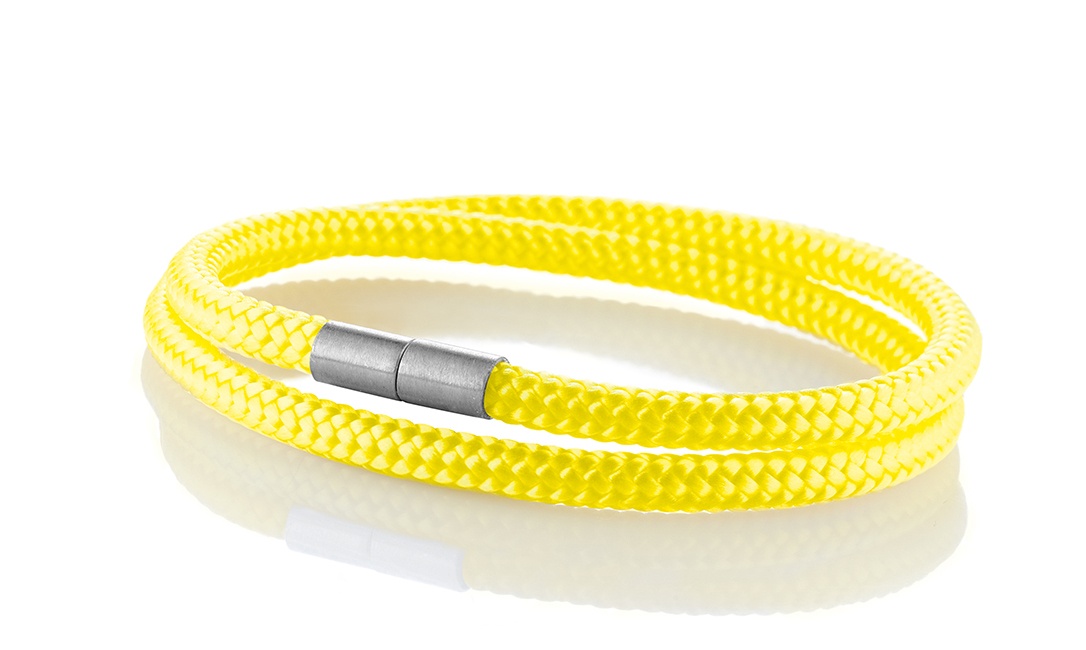 So auch dieses stylische Armband Modell “Norderney” in der Farbe Neon-gelb und der Ausführung 4mm _ doppelt.