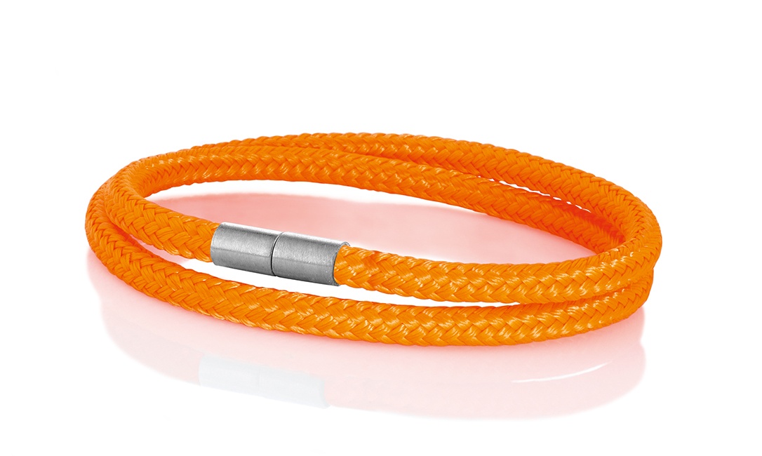 So auch dieses stylische Armband Modell “Norderney” in der Farbe Neon-orange und der Ausführung 4mm _ doppelt.