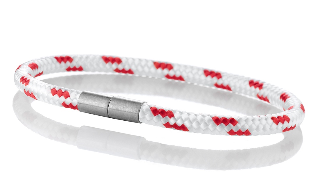 So auch dieses stylische Armband Modell “Rügen” in der Farbe Weiß-Rot und der Ausführung 4mm _ einfach.
