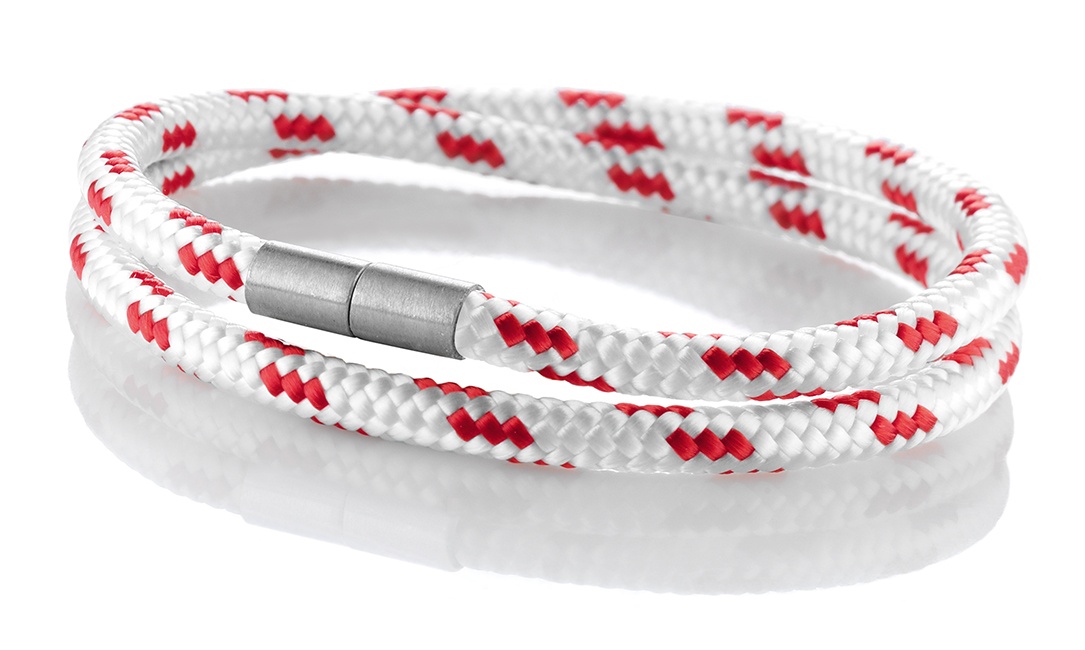 So auch dieses stylische Armband Modell “Rügen” in der Farbe Weiß-Rot und der Ausführung 4mm _ doppelt.