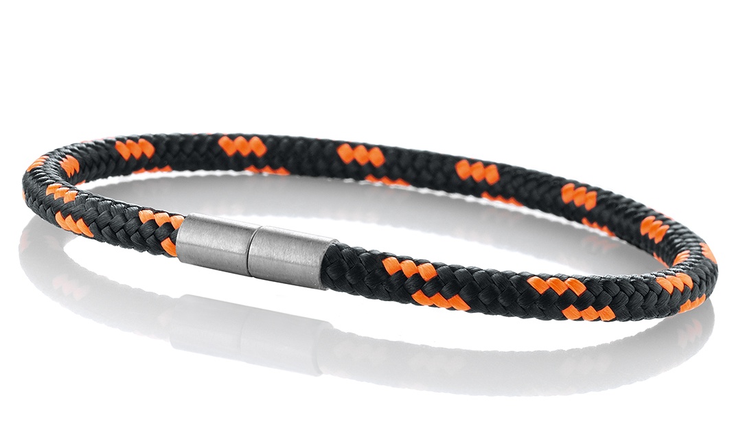 So auch dieses stylische Armband Modell “Usedom” in der Farbe Schwarz-Orange und der Ausführung 4mm _ einfach.